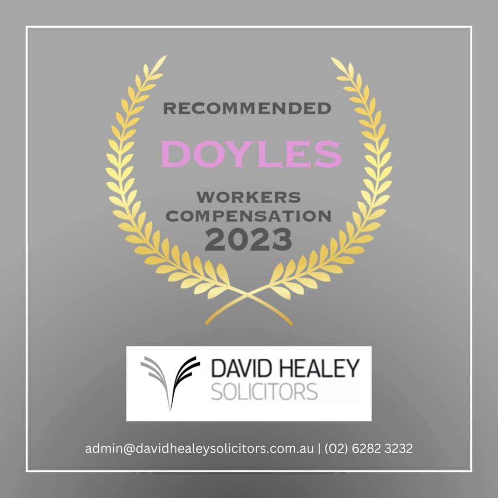 We’re incredibly excited to announce that David Healey Solicitors and Mr David Healey have been recommended as a top Work Injury Compensation Law Firm and Lawyer in the ACT for 2023 by Doyle’s Guide.
